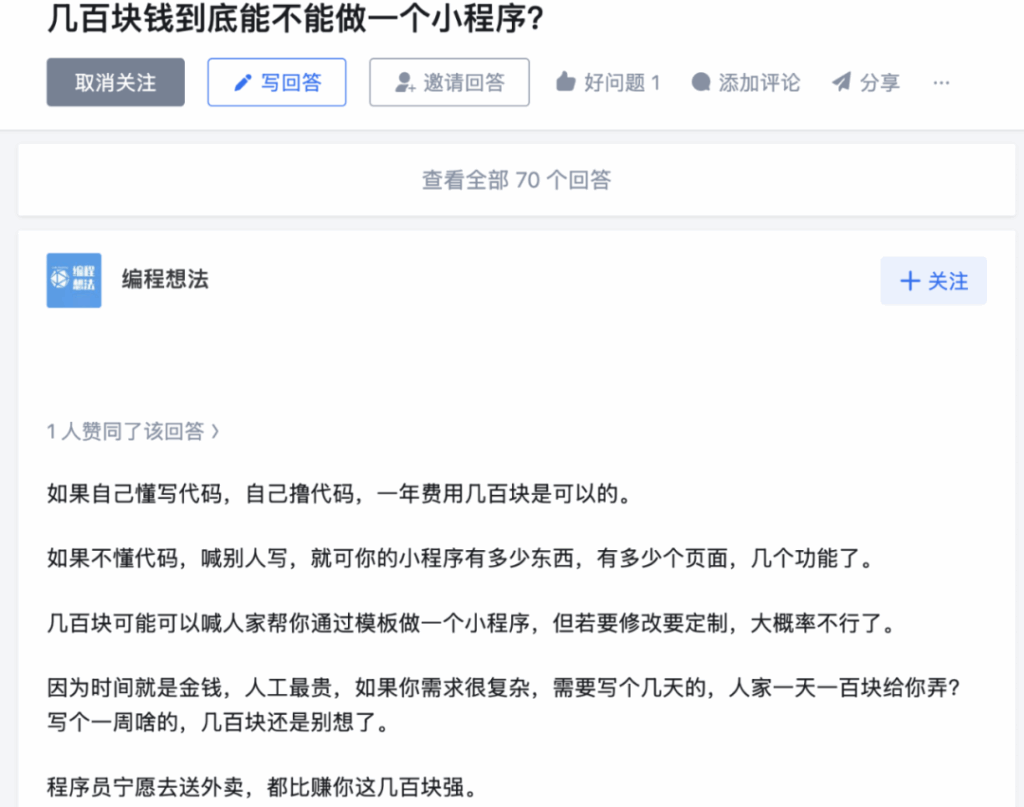 那到底几百块钱到底能不能做一个小程序?