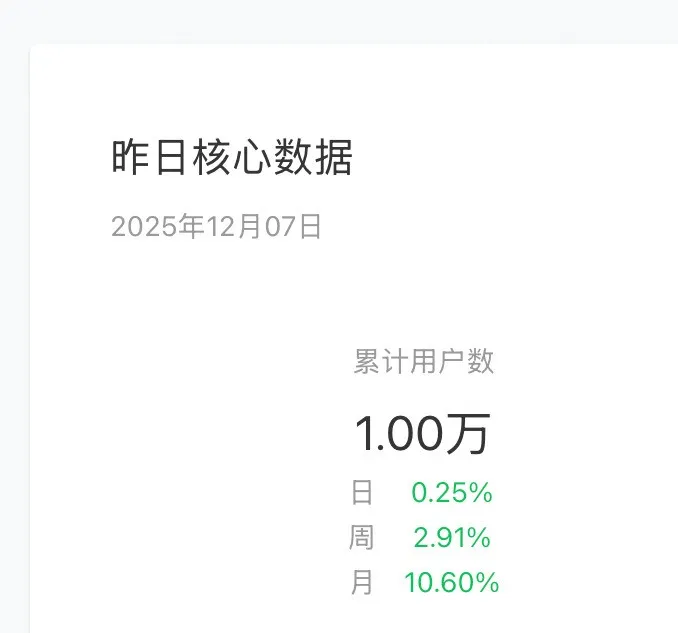 一天增长就是几十个用户,比较平稳,目前主要流量还是从公众号带入。